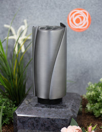 Unsere Aluminiumvase verkörpert den modernen Stil und zeichnet sich durch ihr minimalistisches Design aus. Hergestellt aus Aluminium, verfügt sie über eine runde Form, die sich nahtlos in die Umgebung des Grabes einfügt. Die klaren Linien und die glatte Oberfläche verleihen der Vase ein zeitgemäßes Aussehen. Sie ist sowohl für frische Blumen als auch für künstliche Blumen geeignet und bietet somit eine vielseitige Möglichkeit, das Grab zu schmücken.