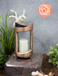 Diese klassische Grablampe aus Bronze strahlt eine warme und beruhigende Atmosphäre aus. Die runde Form und das edle Material verleihen ihr einen zeitlosen Charme. Die Lampe kann mit Kerzen oder LED-Leuchten verwendet werden und sorgt für ein sanftes Licht, das das Grab bei Dunkelheit erhellt.